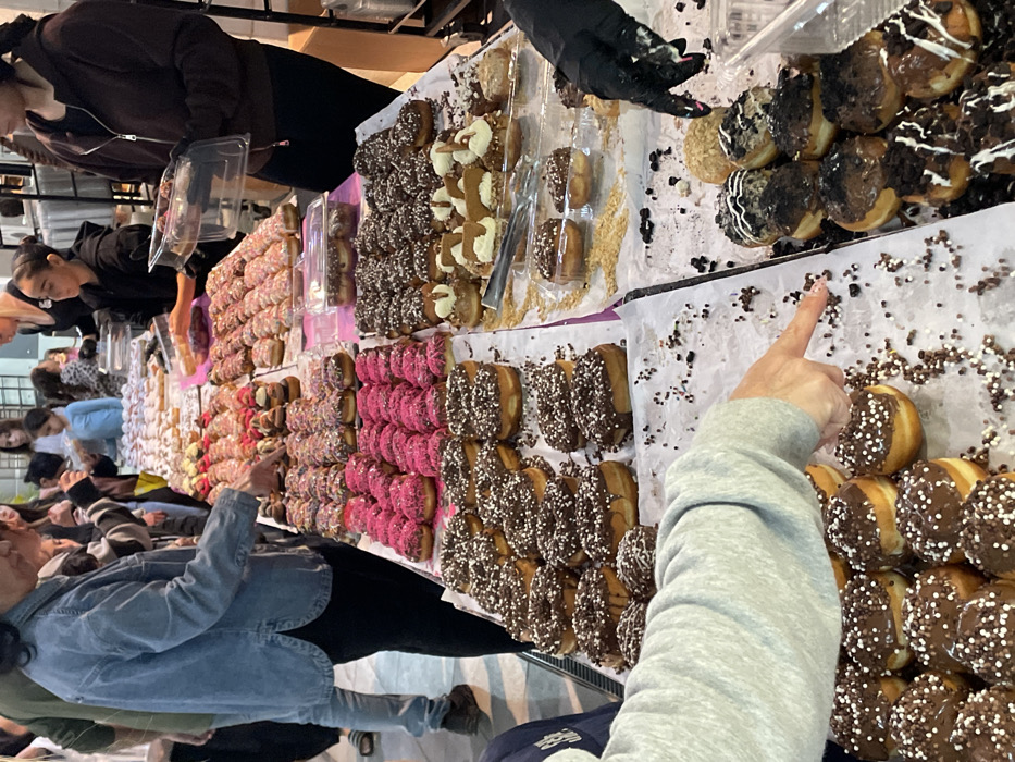 - "An indoor scene in Holon, Israel, displays an extensive array of doughnuts on multiple long tables covered with white paper or cloths" by FM-k41Xm2, licensed under CC BY 4.0