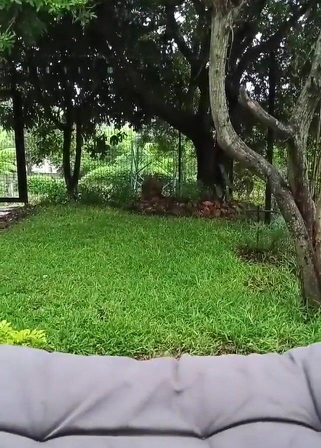 - "view of a lush green yard from behind a grey cushioned surface, likely a couch or seating area" by FM-X3Isl2, licensed under CC BY 4.0