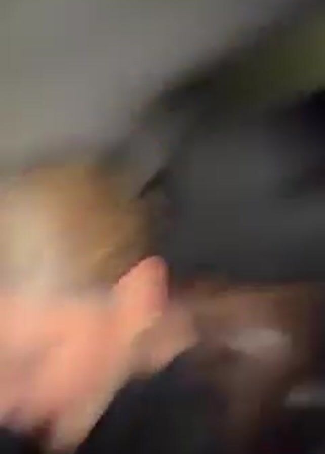 three women inside a car, likely at night. The first woman, with light skin and light brown hair, is holding a large red plastic cup, possibly a drink with a red rim. The camera shifts to show two other women, one with dark hair and another with curly brown hair. They are smiling and laughing, interacting closely. The woman with curly hair is wearing a black leather jacket. At one point, the woman holding the cup spills some of its contents, potentially onto herself or the car interior. The car appears to be moving as indicated by the background lights visible through the window.