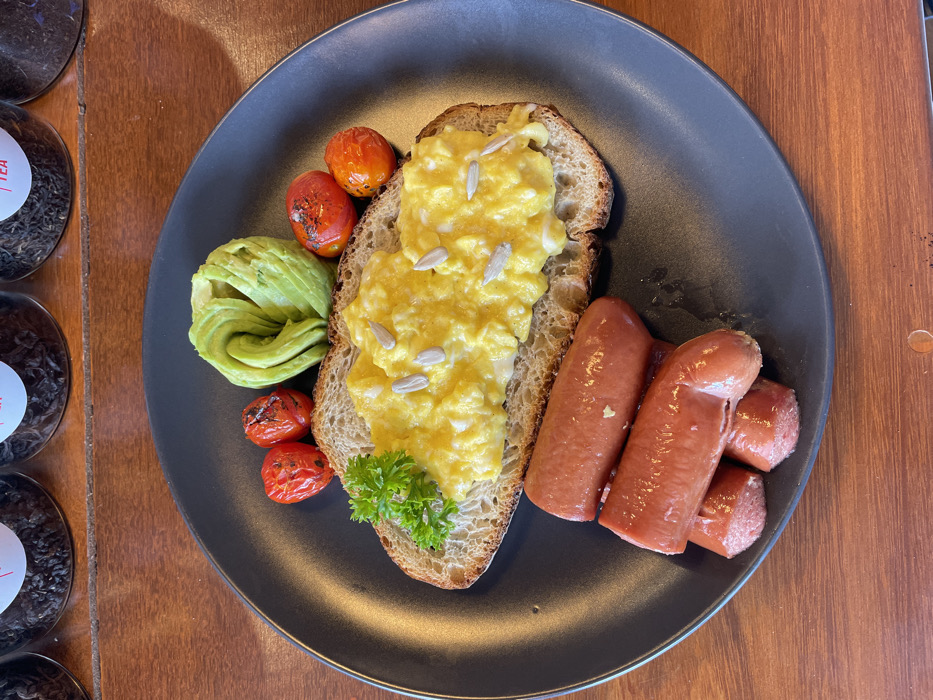 - "The image displays a breakfast meal presented on a matte dark grey oval plate, captured in Denpasar, Indonesia" by FM-sWSo02, licensed under CC BY 4.0
