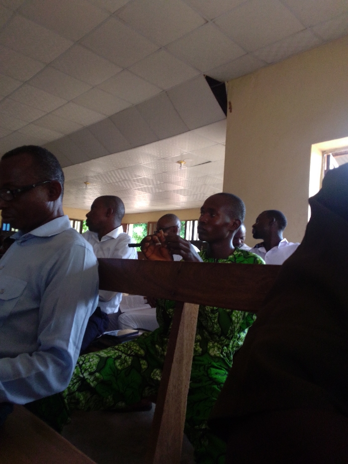 This image depicts an indoor gathering in Saminaka, Nigeria