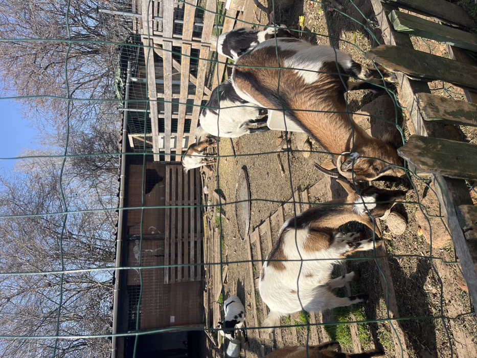 The image depicts an outdoor goat enclosure in the city of German, Bulgaria