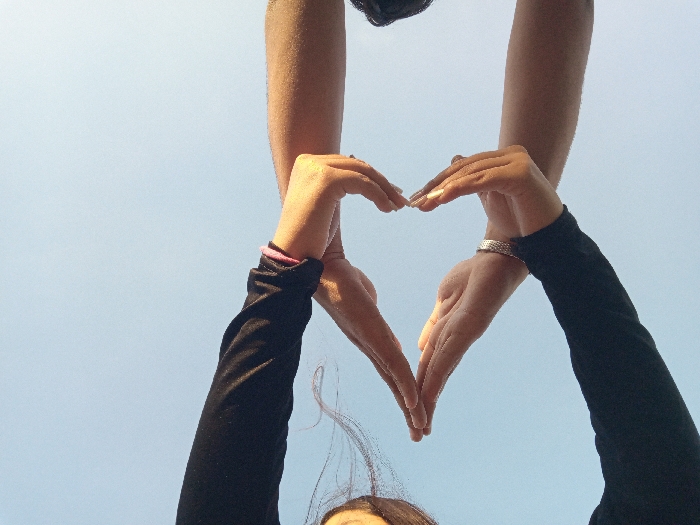 - "Two people join hands to form a heart shape against a clear blue sky" by FM-aHka52, licensed under CC BY 4.0