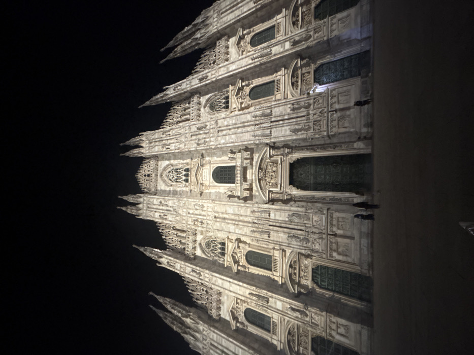 - "The image depicts the illuminated facade of the Duomo di Milano (Milan Cathedral) at night, located in Piazza del Duomo, Milan, Italy" by FM-zz3GW2, licensed under CC BY 4.0