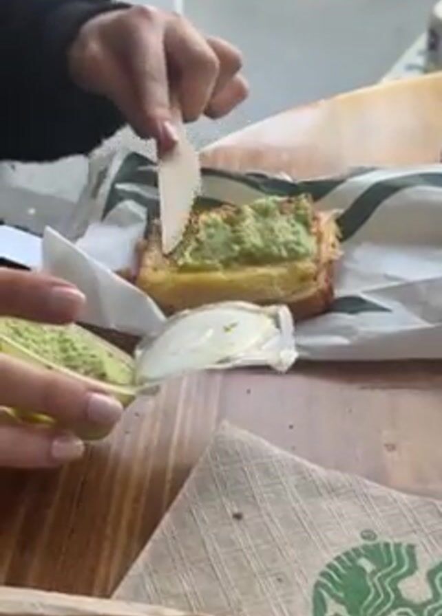 - "A person spreads avocado on a sandwich in a Starbucks" by FM-x6Qwo1, licensed under CC BY 4.0