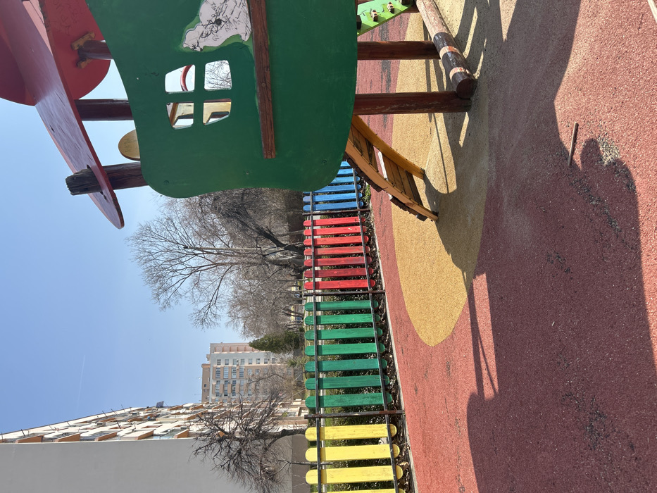 - "The image displays an unoccupied children's playground in Dupnitsa, Bulgaria, bordered by a park and residential buildings under a clear blue sky" by FM-f1ONF2, licensed under CC BY 4.0