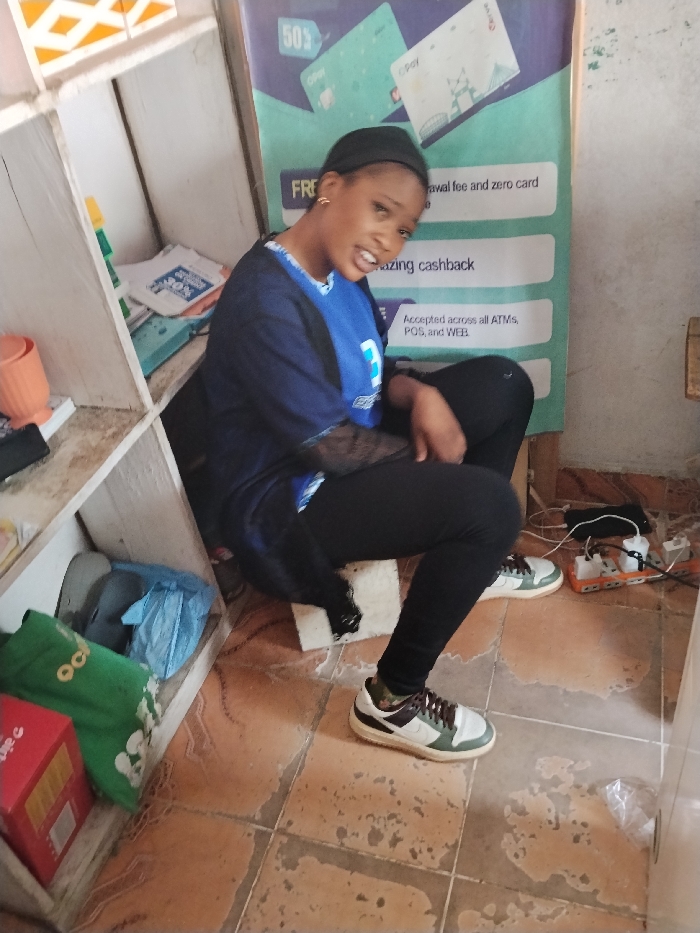 - "The scene is an indoor setting in Fagge A, Nigeria, featuring a single young adult female seated on a low, light-colored block on a tiled floor" by FM-u99df1, licensed under CC BY 4.0