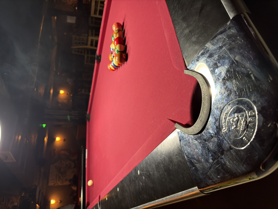 - "The image captures an indoor scene within a dimly lit establishment in Kozloduy, Bulgaria, focused on a billiard table" by FM-wHXkj2, licensed under CC BY 4.0