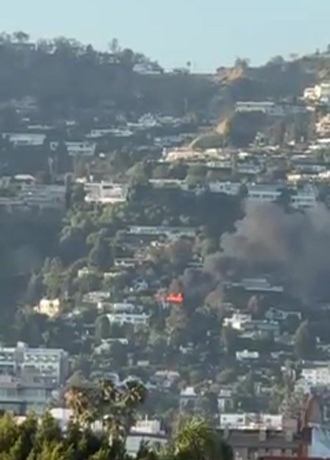 house fire on a hillside dotted with numerous other homes