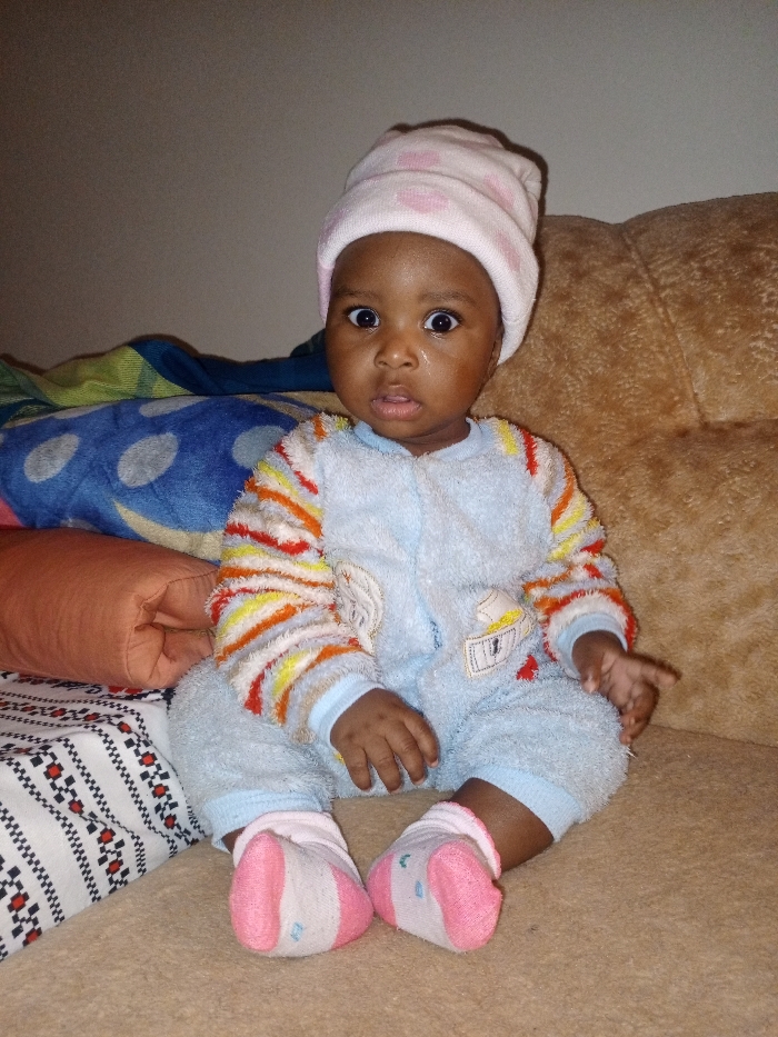 The scene depicts a single infant seated in an indoor, domestic environment within the city of Unknown, Unknown