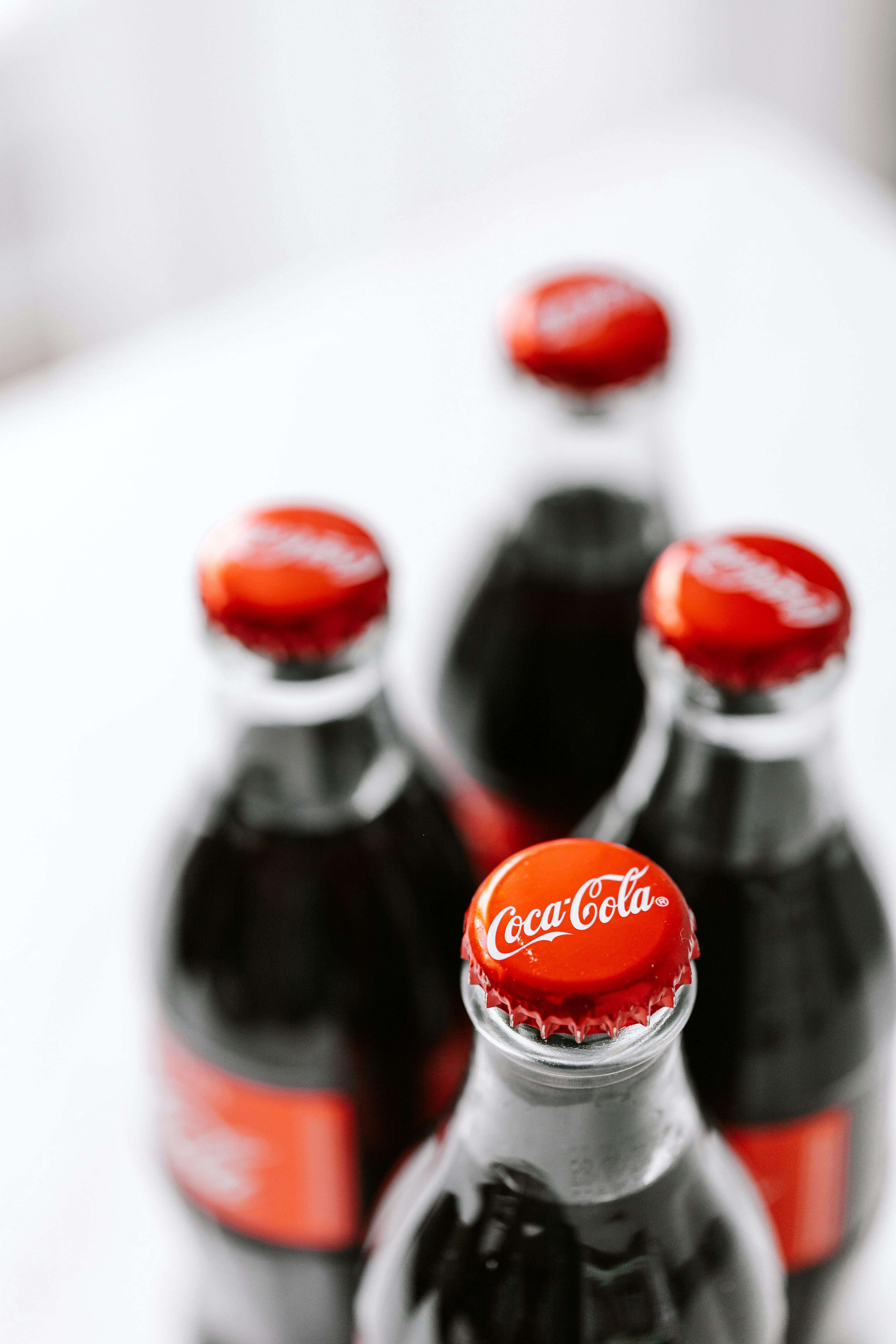 - "four glass bottles of Coca-Cola with red caps" by FM-GtHys1, licensed under CC BY 4.0